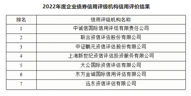 2022年度企业债券主承销商和信用评级机构信用评价结果出炉