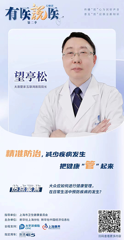 数据显示,当前我国心血管疾病患者达3.3亿,颈腰椎疾病患者超2亿,脑中卒患者约有1300万。随着人口年龄结构的变化,我国慢性病人群患病率逐渐增高。2024年,中国慢病患病人数预计将超过5亿人。 大众应当如何在日常生活中预防疾病的发生,生病了又该如何寻医问药?本期“有医说医大咖谈”邀请到太医管家互联网医院院长望亭松,为我们解读健康管理的重要性。 [详细]